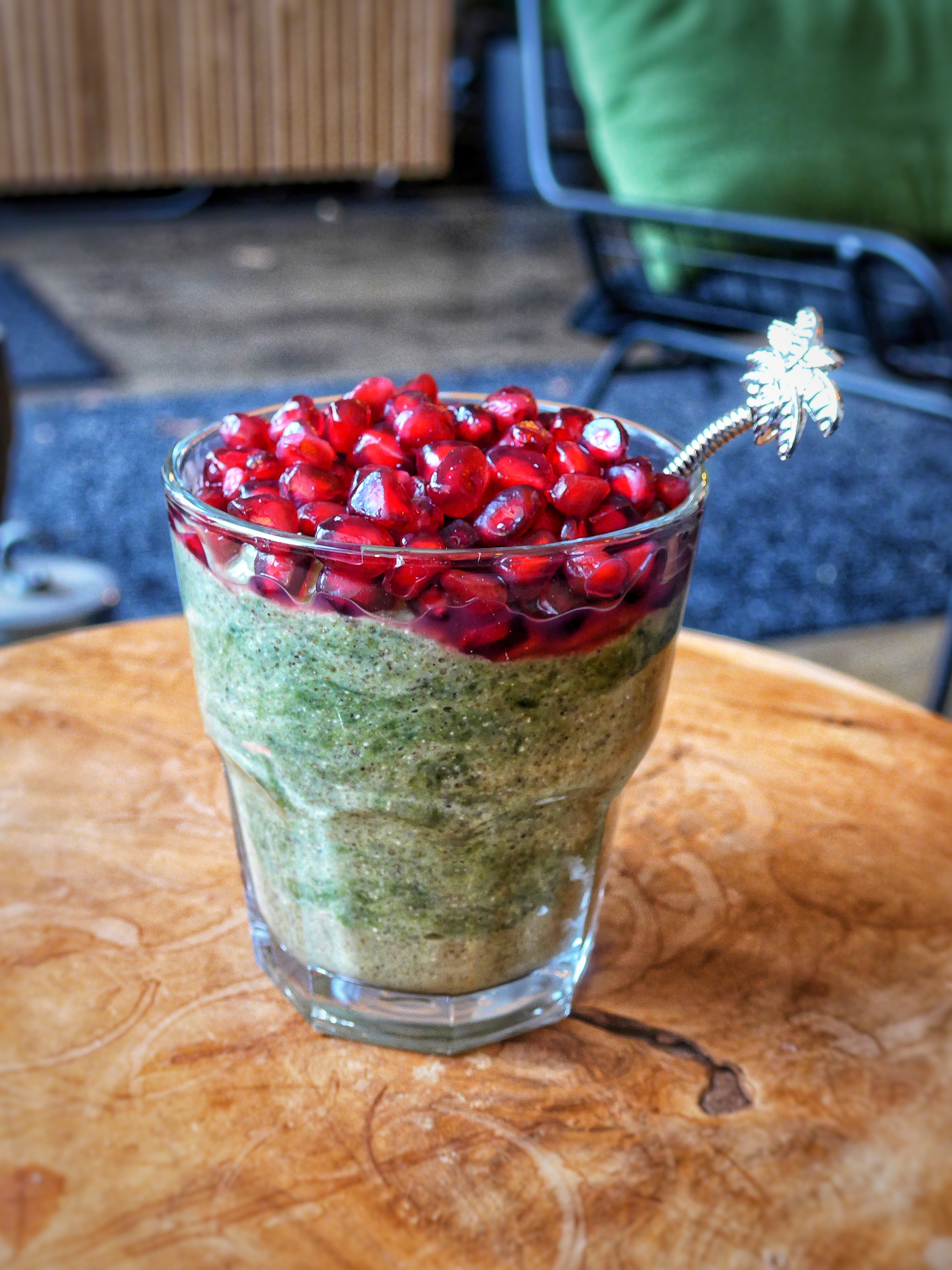 Wanneer je veganist bent is het zeker niet moeilijk om voldoende eiwit binnen te krijgen. Dit is toch wel een vooroordeel wat bijna niemand meer heeft, mag ik hopen? Mocht je je nog steeds afvragen waar je als vegan sporter je eiwitten vandaan haalt en of je wel spieren op kunt bouwen als je geen dierlijke producten eet; kijk dan even naar de documentaire “The Gamechangers” op Netflix. Via social media kreeg ik van vele mede- (vegan) krachtsporters de vraag of ik misschien recepten kon delen die extra hoog in eiwit zijn. Dus………(tromgeroffel) vanaf deze week ga ik met regelmaat plaatsen wat ik eet op een dag; ontbijt-, lunch-, en diner gerechten, maar ook zo nu en dan eens wat ‘Pleasure Food’. De gerechten zijn 100% plantaardig (ook fijn als je geen lactose mag of kan eten), bevatten veel voedingsstoffen en zijn proteïnerijk. Naast mijn blogs vind je vanaf nu hier dus recepten uit mijn ‘Fit Green Proteïn Kitchen‘. Onder het recept vind je de voedingswaarden. Doe jij ook aan krachttraining en verlangt jouw schema andere ‘macro’s’; pas dan de hoeveelheden aan naar jouw behoefte. Doe je niet aan krachttraining maar wil je ‘gewoon’ gezond eten? Ook dan zijn al deze gerechten heel geschikt. Vanmorgen startte ik, na het geven van de eerste Yogales van vandaag, met deze Green Chia Ontbijtpudding