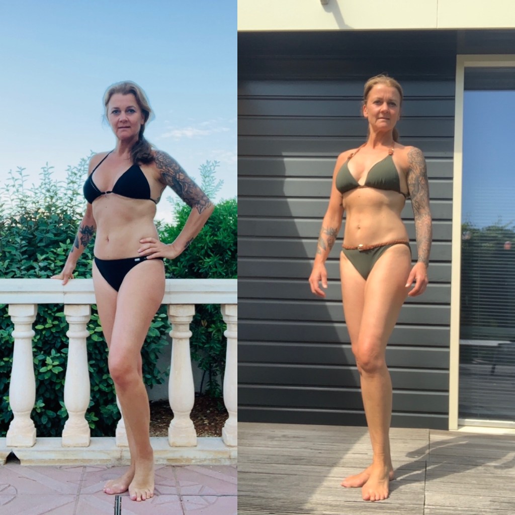 Vorig jaar was ik op mijn zwaarst ooit (op mijn zwangerschappen na, al was ik zelfs toen niet heel veel zwaarder) met waarschijnlijk mijn hoogste vetpercentage ooit.  Na een jaar van consistent trainen en het volgen van een uitgebalanceerd voedingsprogramma deelde ik vorige week mijn resultaten. Ik vond het best lastig om ook die eerste foto te plaatsen. Natuurlijk besef ik dat voor velen die eerste foto er al prima uit ziet. Ik zag echter vorig jaar mijn lichaam duidelijk veranderen en realiseerde me (na lang mijn kop in het zand te steken) dat ik gewoon aan het ‘vervetten’ was. Een onvermijdelijk gevolg van mijn leeftijd? Nee! Het was een onvermijdelijk gevolg van een tijd lang minder trainen en heel veel meer eten. “Maar jij eet toch meestal heel gezond?”, vroegen meerdere mensen aan me. Inderdaad meestal (nee; niet altijd! Ook ik lust op zijn tijd graag een portie frites of stuk chocolade) wel.  Maar ook van gezond eten kun je simpelweg te veel eten.